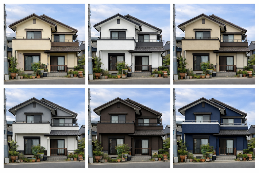 カラーバリエーションツールで実際の家の色変更を実際の塗料を使って、変更した家の完成イメージをすることができあsh